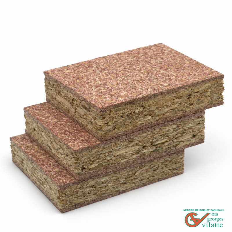 Panneau de particules de bois à faces fines, poncés et calibrés, hydrofuge et ignifugé dans la masse. Il bénéficie d'un classement en réaction au feu Euroclasse B et M1.
